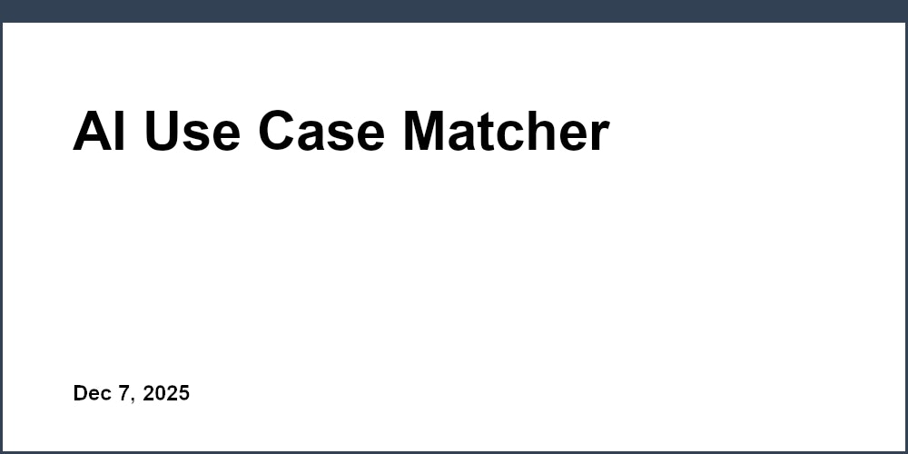 In today’s fast-paced world, businesses and individuals across industries are turning to artificial intelligence to solve complex problems and streamline operations. Whether you’re looking to automate repetitive tasks in healthcare or boost customer engagement in retail, finding the right technology can feel overwhelming. That’s where a tool like the AI Use Case Matcher comes in handy. It simplifies the process by connecting your unique needs with relevant applications of AI, saving you hours of research.